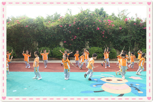 本次早操活动各年级结合了各年龄段幼儿的特点,以“国中风”为主题,选择了节奏感强、幼儿喜欢的歌曲做背景音乐,选择扇子、筷子做器械。整个操节由操热身队列练习、器械操、体能练习、放松环节四部分组成。