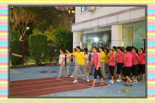 翰林幼儿园老师们与其他老师们的互动,最后上场的是石厦幼儿园的老师们。教师表演为此次比赛拉开精彩序幕,比赛正式开始了,首先是踢毽子比赛后是跳长绳比赛。