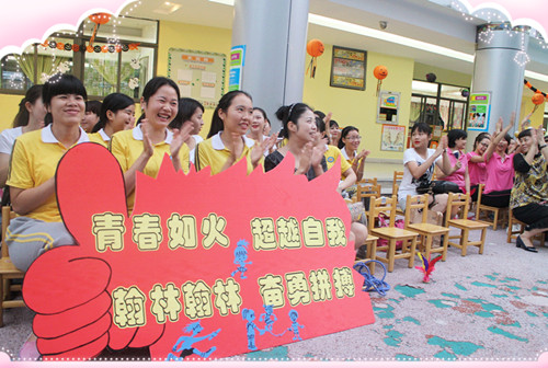 翰林幼儿园老师喊口号“青春如火超越自我,翰林翰林奋勇拼搏!”