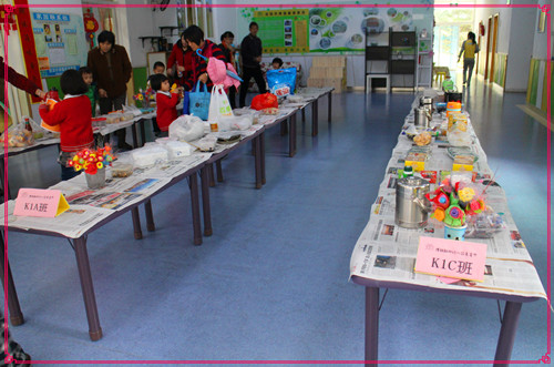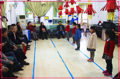 K1B班小朋友们排成一排和家长们击掌说HELLO