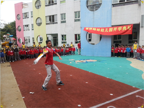 早上10点,我园全园师生精神饱满地随着欢快的音乐进入操场,在庄严的升旗仪式中,开启了新学期的旅程。杨璠园长为孩子们致辞,希望每个孩子在新学期里能得到体、智、德、美全方面的发展。武术老师们的表演深受小朋友的喜爱,引起了孩子们的热烈掌声。最后由邹老师带领孩子们一起进行律动《快乐向前冲》。
