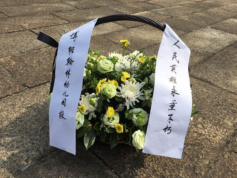 今天,小朋友们的心情格外凝重,他们挺立在烈士墓前,手捧菊花,静静地肃立着,深深地表达对先烈们的敬意。