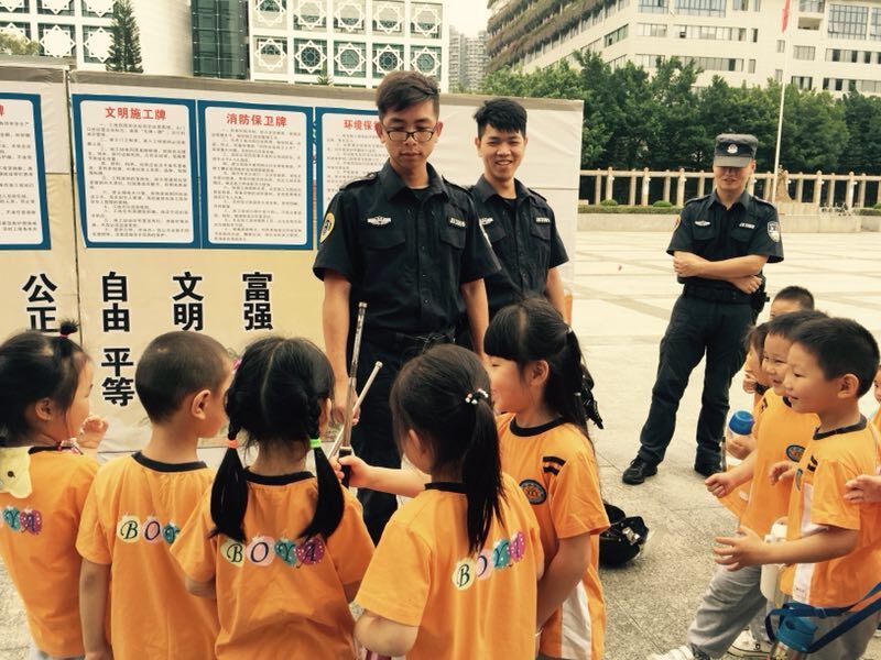 在这一次户外踏青小朋友们还遇到了警察叔叔在进行训练,孩子们第一次跟崇拜的警察叔叔有了一次近距离的交流。