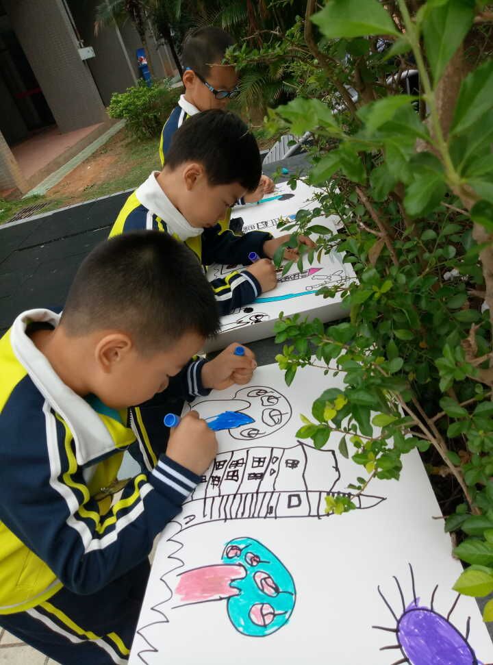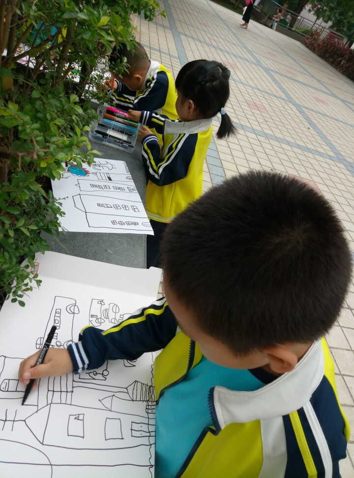 瞧,小朋友们拿着画笔,画的多么认真。