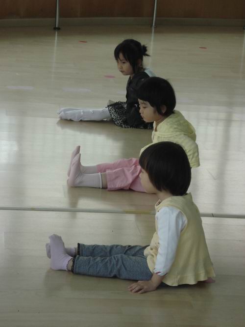 瞧!这是K1C班的小朋友在学形体课中的勾绷脚呢!