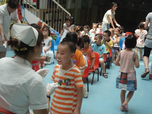 6月20日妇幼保健院的医生来我园给小朋友们进行了护齿。