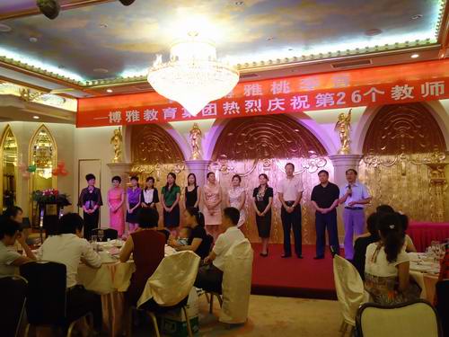 博雅教育集团的领导们也给予全体教师们关爱,所有教职工欢聚在深圳大中华喜来登酒店表彰先进、享受美食、观赏节目。今天的庆祝活动告诉我们博雅的每一个人要珍惜我们的成绩,珍惜我们的工作,珍惜我们的生活,同时珍惜我们身边的一切美好的事物。让我们携手在今后的日子里谱写博雅更加灿烂辉煌的明天吧。