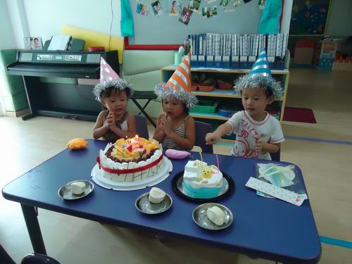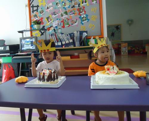 这是我们的生日蛋糕:“现在只能看不能吃哦~~`~”