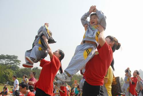 为了丰富幼儿在园生活,给他们一个展示自我的机会,让孩子们在多彩的童年里留下最美好的回忆,以开心、轻松、多样的庆祝方式来进行家园同乐,我园于2010年11月2日在莲花山风筝广场举办了博雅翰林幼儿园“我运动.我健康”迎大运亲子运动会。本次亲子运动会结合了大运、环保主题,通过家庭运动,让幼儿在游戏的同时感受到了运动的乐趣与魅力,体验了成功的快乐。活动中家长们积极参与,在彩旗队、家长宣誓环节中表现突出,游戏环节中跟孩子一起找回了童年的快乐.最后在孩子们和家长的欢笑声中莲花山组织部领导为我园颁发了“第五届公园文化节优秀组织单位”光荣称号,活动在一片欢声笑语当中结束…