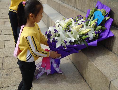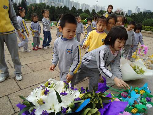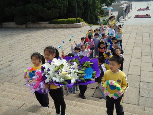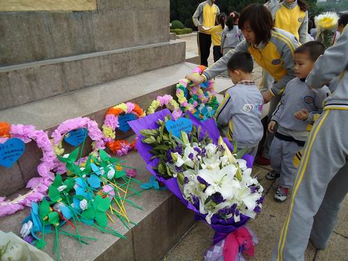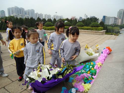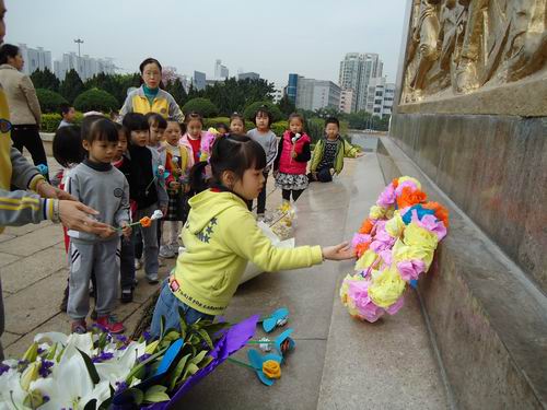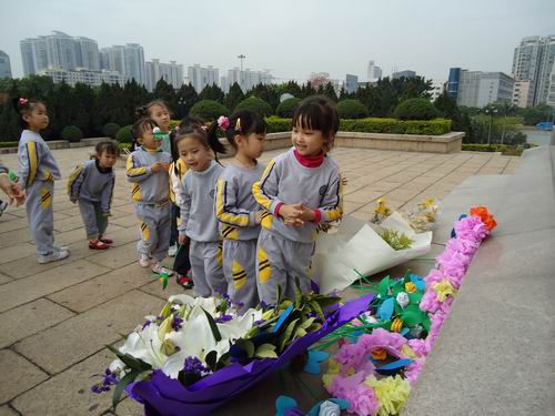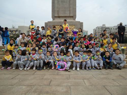 清明扫墓,是中华民族慎终追远,行孝品德的具体表现,为了教育幼儿珍惜今天的幸福生活,继承先烈遗志,发扬革命传统。我们大班组全体师生3月29日上午到烈士陵园,进行扫墓活动。老师、孩子们都献上了自己亲手制作的鲜花,表达对烈士们的敬意。