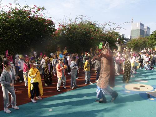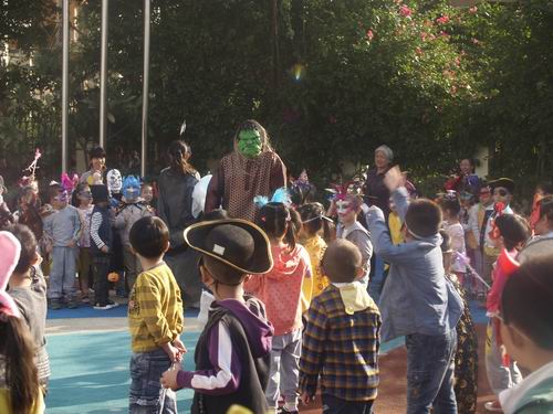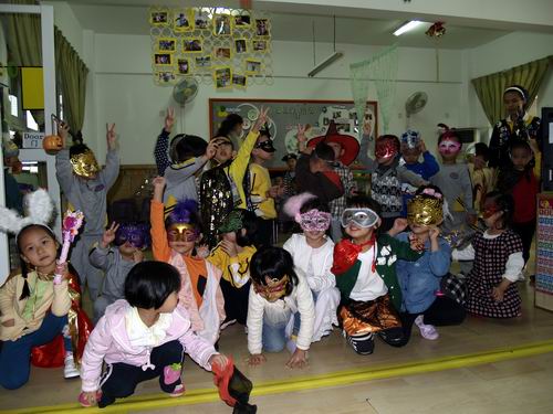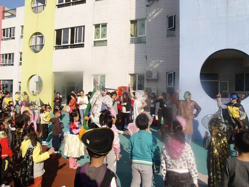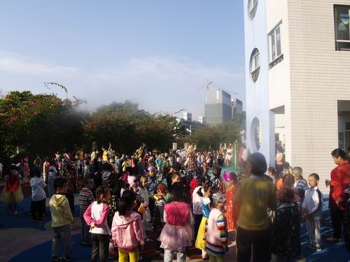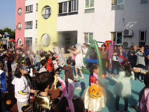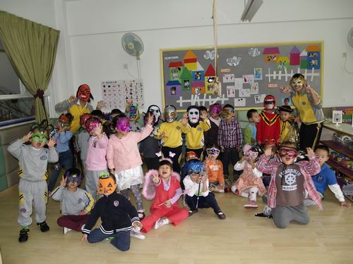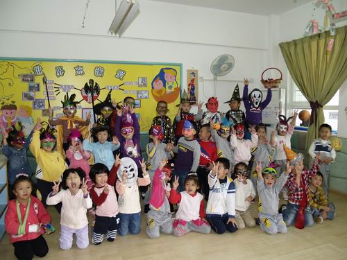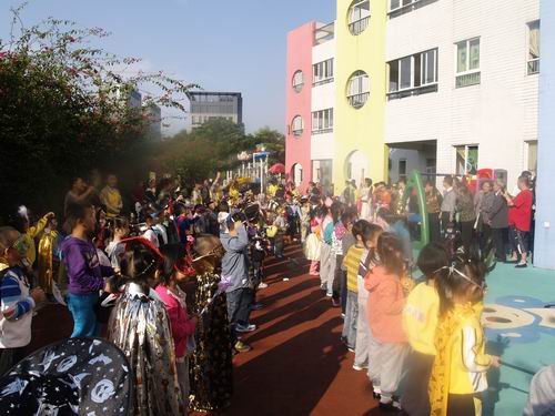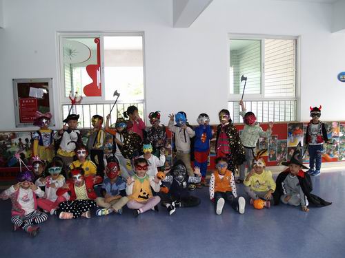 在西方国家,每年的11月1日,有个halloween,那就是万圣节。这是国外孩子们最喜欢的节日,也是充满神秘的节日,在万圣节期间,许多公共场所乃至居家院落,都会布置上很多装饰物,孩子们会穿上每年不一样的万圣节服装,拎着南瓜灯的提篓去挨家挨户地讨糖,说是“trick or treat” ,现在的万圣节流传到今天已经没有了宗教迷信色彩,它已经成了一个孩子们的节日,也是年轻人开化妆舞会的节日。为了让我们的孩子感受这一独特的节日气氛,了解西方万圣节习俗,11月1日早上,翰林幼儿园举行了一个小型的万圣节活动,让孩子们感受到这个特殊节日带来的欢乐~。
