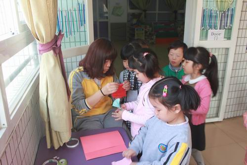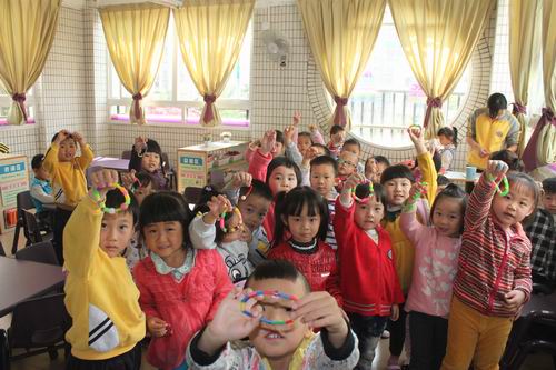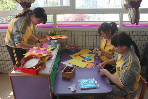 瞧,老师正手把手的教孩子们制作礼物呢!