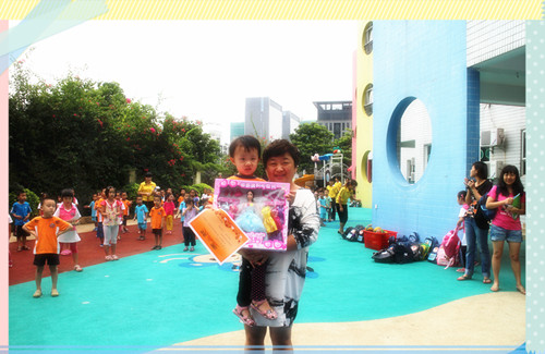 园长妈妈颁奖状了,还有礼物的哦!真开心啊!