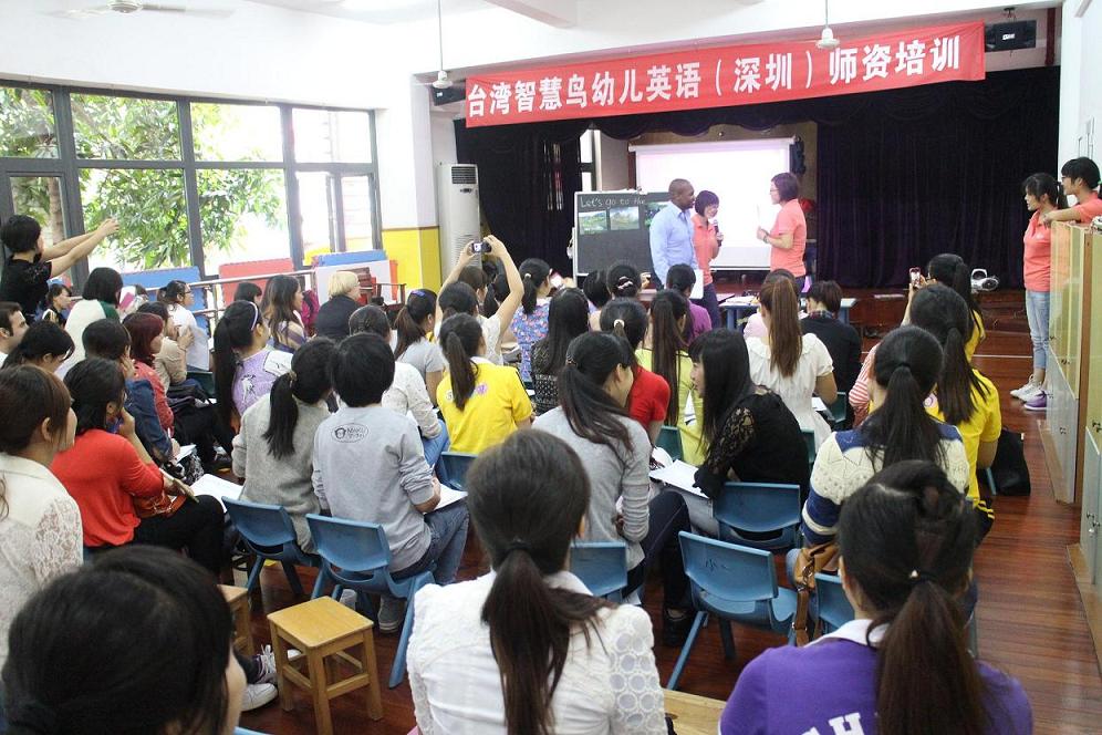 11月10日上午九点在南山区花园城幼儿园举行了台湾智慧鸟英语(深圳)教师培训。培训老师针对如何更好的创设英语学习氛围进行了深入探讨。而且进行了示范课展示。