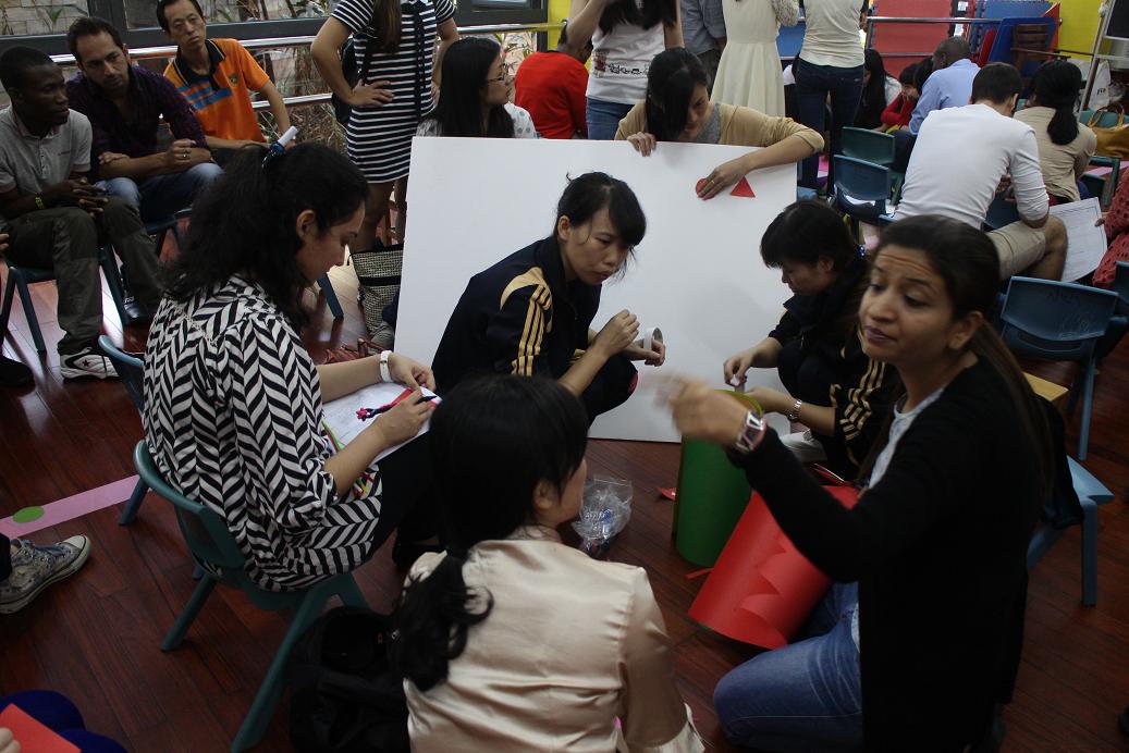 来自深圳不同幼儿园及其不同国家的老师们一起探讨研究学习如果让孩子们更好的学习英语。