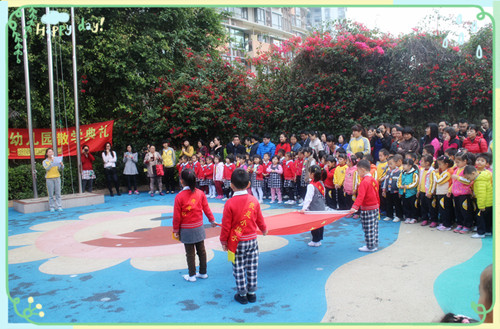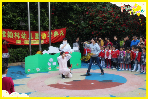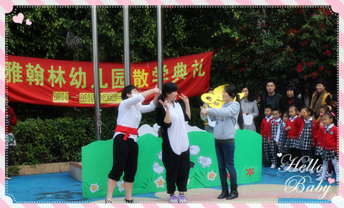 仪式上,首先举行了庄严的升旗仪式,全场肃立。为迎新年—羊年,老师们带来了活泼有趣且有教育意义的人偶剧《小白羊和小黑羊》。随后园长妈妈宣读各班级“体能小冠军”、“舞蹈小天才”、“全勤宝宝”等获奖人员并为其颁奖。仪式在全体师生、家长们一起欢唱《翰林相亲相爱一家人》中圆满落幕。