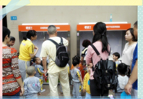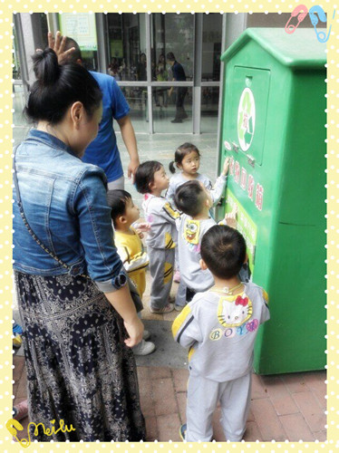 K1D班的小朋友们在废旧电池、衣物回收箱