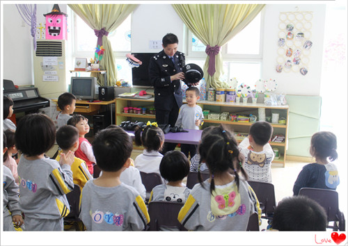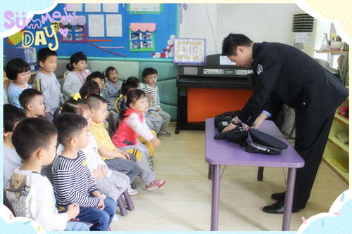 K1C班的警察叔叔给小朋友展示道具,还给小朋友戴警帽!