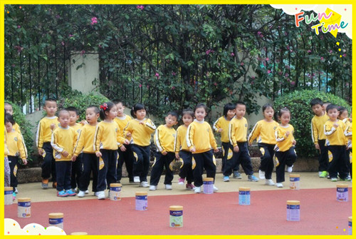 首先由小班小朋友们展示“奶粉罐操”