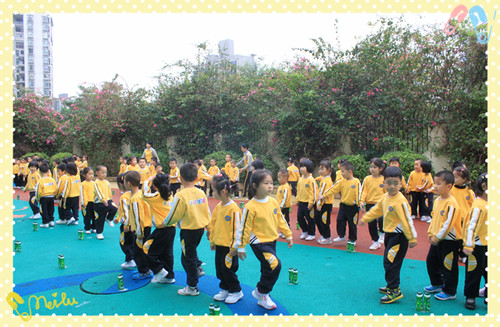 各年级组根据孩子的年龄特点,选用不同的环保器械,编排了适合不同年龄阶段的早操。小班的孩子们精神抖擞,踏着音乐快乐的走、跑、跳、爬;中班的孩子们动作整齐、轻快,队形变化丰富有序;大班的哥哥姐姐也表现出了最佳状态,整个操节充满了活力。