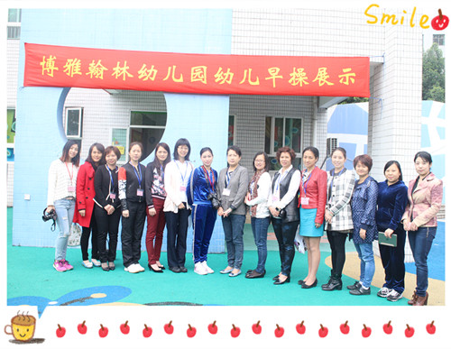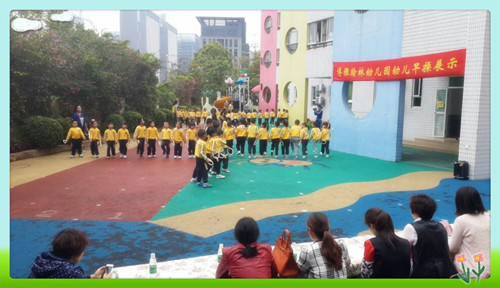 早操是一日活动中的重要环节,在发展幼儿基本动作、增强幼儿体质,培养幼儿群体意识等方面有着重要的作用。为了让家长、老师和小朋友们都能重视早操活动,同时将本学期的早操编排成果向家委会做一个汇报,翰林幼儿园于2015年4月9日上午邀请了各班级的家委会成员来园观摩了幼儿早操展示活动。