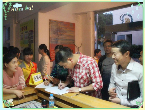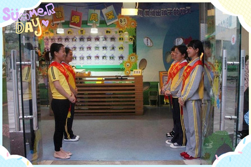 家长学校即将开始,迎宾老师欢迎家长们的到来