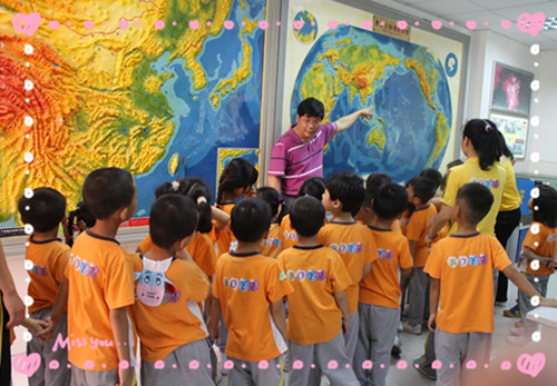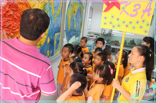 今天大班的小朋友们到福田翰林学校参观,在小学的校园,大班幼儿兴致勃勃的参观了小学的整体面貌。热情的地理老师还给孩子们讲了关于五大洲,七大洋的知识。还一起参与了小学哥哥姐姐们的活动娱乐场所,整个活动过程孩子们都很兴奋。