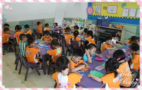 K1C班小朋友正在专心的为妈妈制作手工-----手提袋