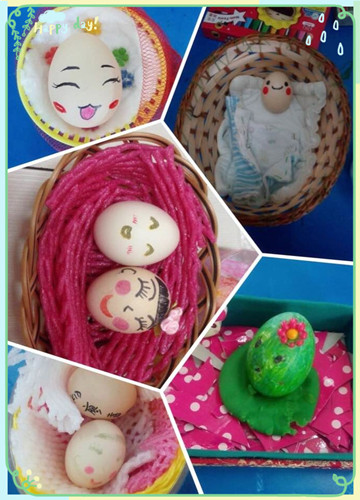 爸爸妈妈和宝宝们在家一起精心设计的蛋宝宝和温馨的蛋窝