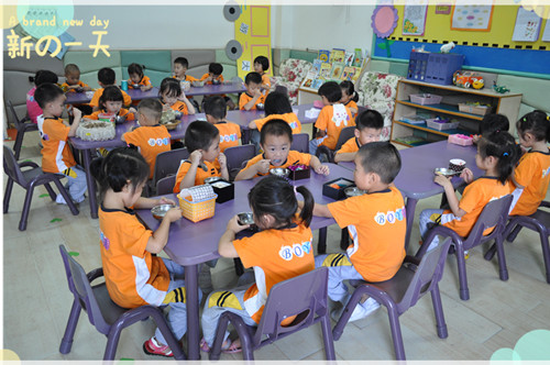 K1C班的小朋友们一边吃早餐,一边守护着“蛋宝宝”