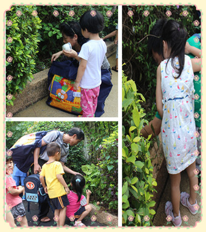 放学啦~~小朋友们和大人们一起开启寻蛋之旅。
