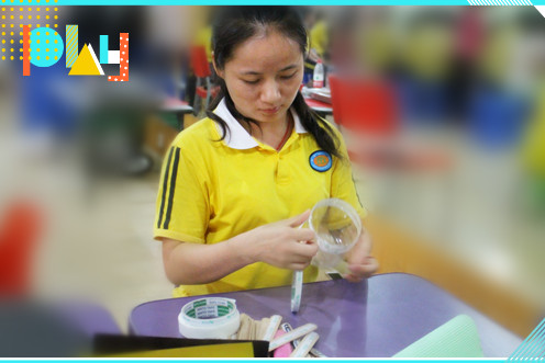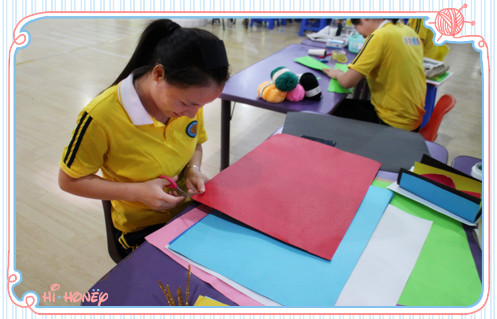 老师们开始认真做手工