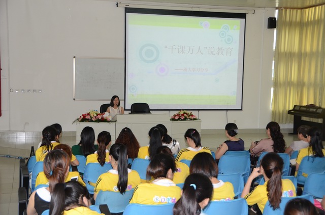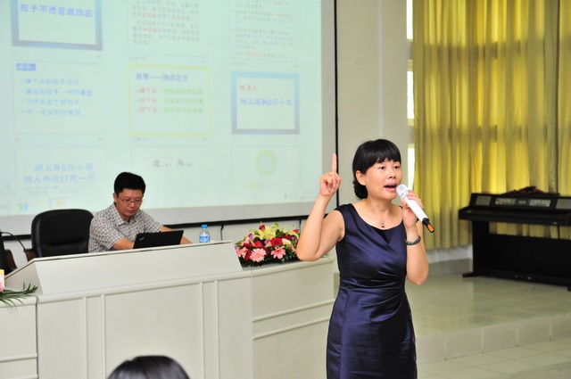 6月10日上午9点,博雅教育集团在益田花园学校四楼会议室召开幼儿主题教学系列研讨活动阶段总结会。应博雅教育集团邀请,全程参与集团主题教学研讨活动的福田区教师培训中心主任黄爱华再次莅临我集团指导并进行专题讲座。集团所属的各幼儿园参加了此次会议。 会议由水榭花都幼儿园杨容园长主持。首先,通过视频,大家一起回顾了本次主题教学系列研讨活动的过程。接着,四位主讲老师谈参加这次研讨活动的感受并由杨园长对本次活动作总结。接下来,黄爱华主任为我集团全体幼儿教师做专题讲座《说话的艺术》。讲座在《感恩的心》的旋律中开始。首先,黄主任提出幼儿主题教学活动的几个关键词:研读文本,活动设计和有效互动,这是教学中至关重要的几个环节。接着,黄主任通过讲故事的形式,呈现对实际教学的思考,比如说“为什么叫新会”的故事,让我们明白教育是一门再加工的艺术。 黄爱华主任的讲座紧贴教师的工作和生活实际,深入浅出,语言幽默生动又极尽真诚,不时引起教师们会心的笑声和掌声。整个讲座持续了近两个小时,气氛融洽而热烈。下午,邢艳和黄小丹园长介绍杭州学习情况及体会;杨容和石春兰园长介绍香港学习情况及感悟。 至此,本学期集团幼儿主题教学系列研讨活动告一段落。本次活动加强了幼儿园对主题教育教学课程模式的实践,提高了幼儿园主题教育活动的教育成效,促进了幼儿教师专业化成长,也为集团幼儿主题教学的进一步探究奠定了良好的基础。 |